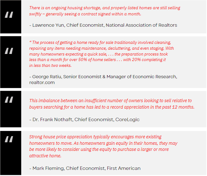 What does that mean for you? If you’re selling so you can move into the home of your dreams or downsize into something that better suits your current needs, you have an opportunity to get ahead of the curve by leveraging your growing equity and purchasing your next home before prices appreciate further.