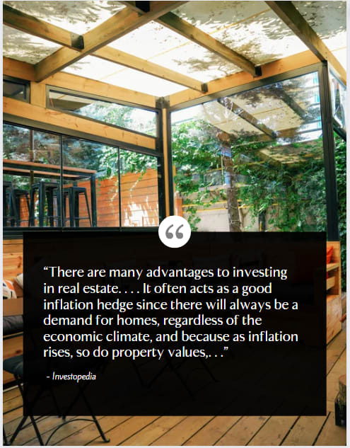 “Real estate is one of the time-honored inflation hedges. It's a tangible asset, and those tend to hold their value when inflation reigns, unlike paper assets. More specifically, as prices rise, so do property values.”