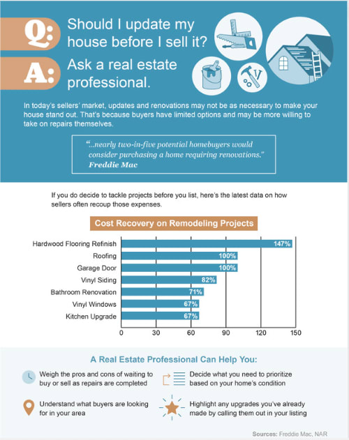 Before you decide which projects and repairs to take on, connect with a real estate professional. They have first-hand experience with today’s buyers, what they expect, and what you need to do to make sure your house shows well. A survey from Freddie Macfinds: